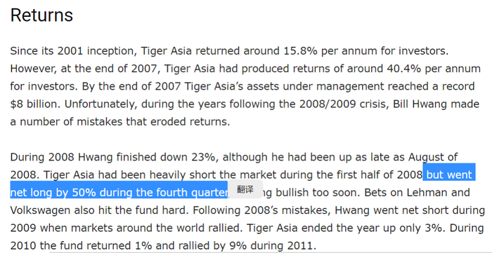 据Google信息,他是韩国人,最早在老虎基金当Julian Robertson的小弟,2001年他从老虎出来,拿着前老板的1600万美金天使投资,6年时间就把Tiger Asia做到80亿美金的规模,取得年化40%的优异回报。