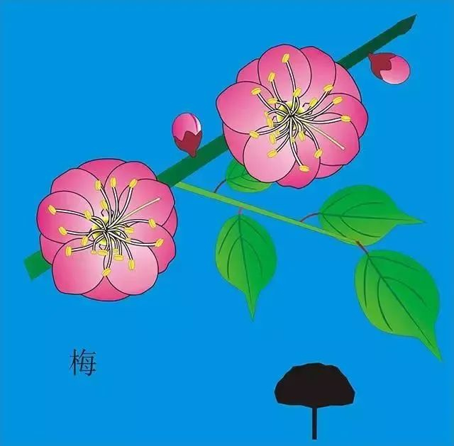 而长江以南较之更为常见的是作为国花候选的梅花。梅花品种极多,白梅与杏相似,区别在于梅花的萼片几乎不不反卷,而杏的萼片反卷。栽培的梅花品种颜色各异,单瓣重瓣、红萼绿萼均有,主要分为果梅和花梅两大类,而主要用于观赏的花梅则又有枝条直立的直脚梅类、枝条下垂的照水梅类和枝条扭曲的龙游梅类。