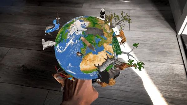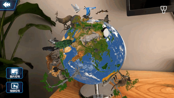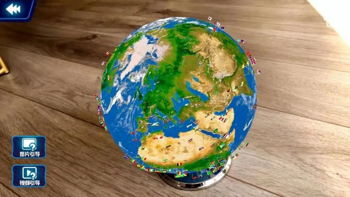 拥有了AR“黑科技”,孩子拿着手机(或者平板电脑)对着地球仪“扫一扫”,就能从地球仪上看见一个立体的世界。