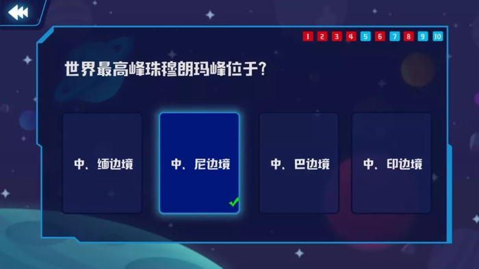 进入软件后,点击“地理答题”按钮,就能看见答题小游戏。