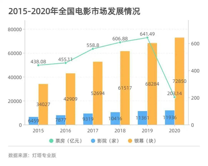 与此相应,2015年末全国影院银幕数为3.4万块,2020年增加至7.2万块,增幅114.09%。