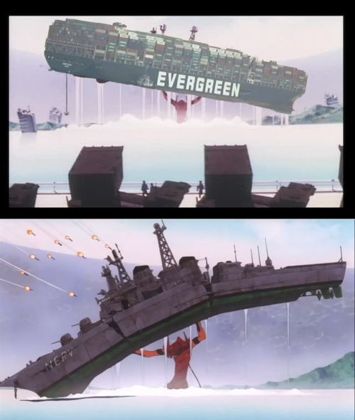 比如,派出EVA二号机把货轮抬走——新世纪福音战士剧场版《Air》中,EVA二号机曾从水中举起巨大战舰抵挡导弹并砸向敌人。