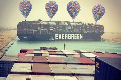 眼见“长赐号”还在航道上堵着,来自世界各地的网友们干脆玩起了各种梗。