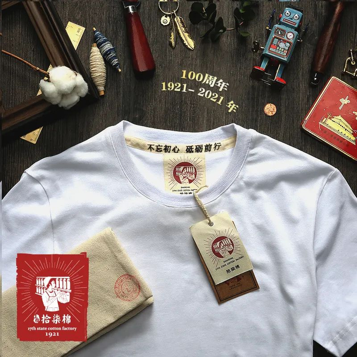 这不,为致敬百年老厂——国棉十七厂,「上纺拾柒棉 x 新疆桃蕾棉」联合推出了一款融合了新时尚,又复古了老上海元素的拾柒棉白T恤就这样应运而生。