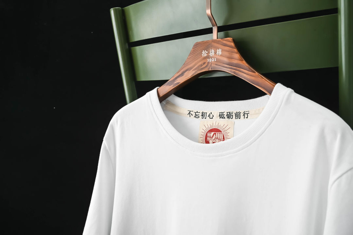 这件拾柒棉白T恤就是在传承了国棉十七厂的传统织造工艺后,融合现代科技经过37道工序,保证T恤的品质和手感。
