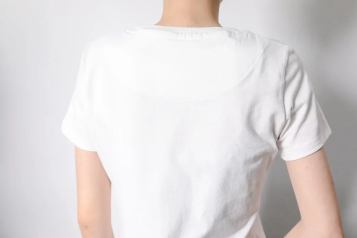 穿着普通T恤的同事的背上留下了不少痕,纸巾一下就黏在背上了。要是天气再热一点,还是穿着拾柒棉这种“秒吸汗”的T恤会更舒爽吧~
