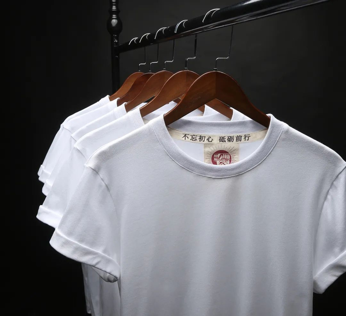 因此,经历了国家棉花研究所育种-->新疆核心棉花基地种植-->国内一线纱厂织造-->国棉十七棉厂工艺传承制造,最终做出了这件国人自己的小白T。