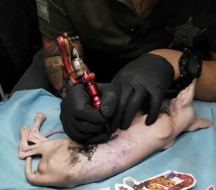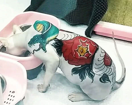 然而,无毛猫本身,就是人类为了一己私欲,经过近亲选育生产出来的宠物猫。这种猫性格温顺、无攻击性,但它们的皮很薄且密布神经,它们会加倍体尝纹身的痛苦。