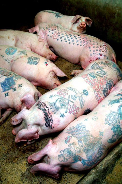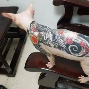 作为纹身师的进阶工具,猪的命运最为坎坷,猪纹身的历史已经有几百年了,因为体型庞大,它们的纹身周期可能长达数月甚至数年,成为一件不断成长的“艺术品”。