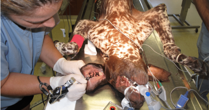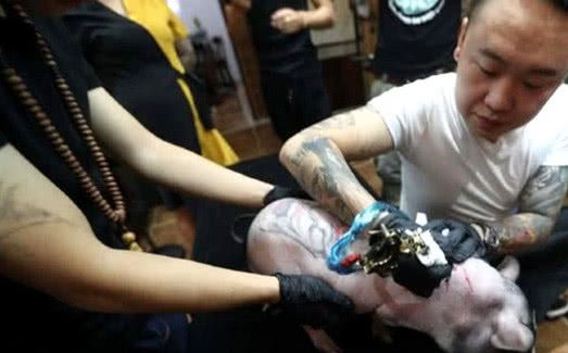 狗不愿意怎么办?没事儿,狗的意志是以人的意志为转移的,专业的纹身店早就准备了麻醉气体。虽然宠物从麻醉中醒来的概率只有50%。