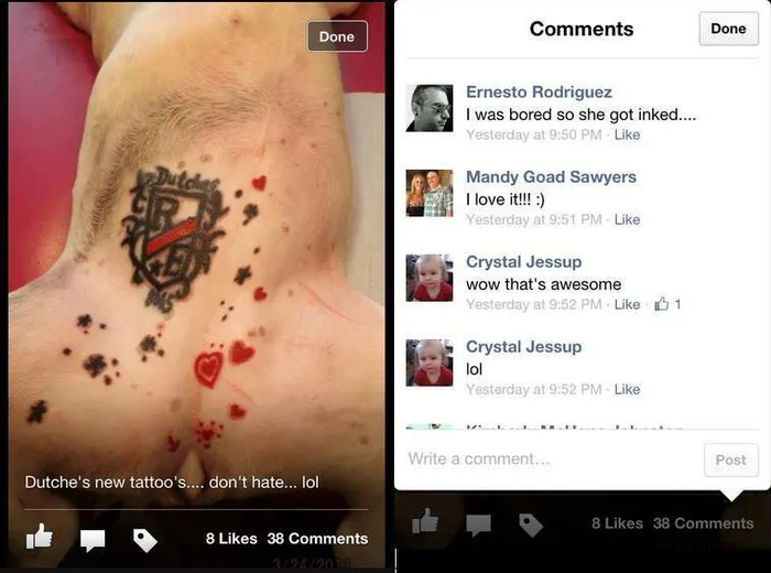 纹身师埃内斯托·罗德里格斯在他的两只比特犬腹部都纹了身,按照惯常操作,他解释说这是为了防止他们走失做出的标识性行为。但人们还是很难理解,他为什么需要这么大的纹身才能确认这是他的狗。