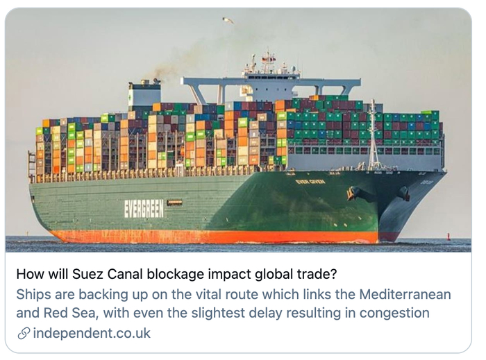 更令人担忧的是,蝴蝶效应已经显现。如果不尽快“释放”这艘船,将影响物价,甚至有评估称,基本会波及商店中看到的任何东西的价格。