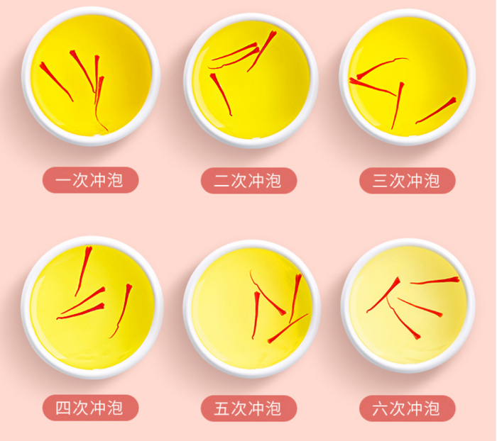 藏红花可以反复冲泡6次,颜色上也会越来越浅。