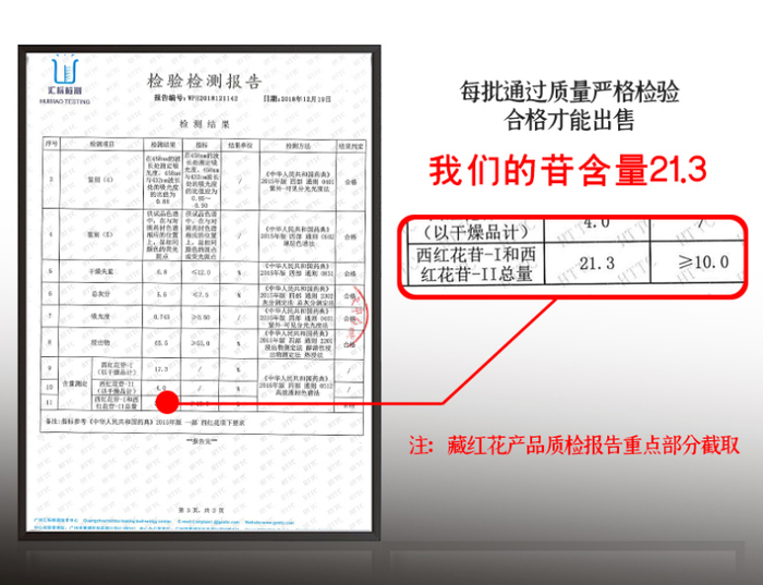普通的藏红花苷含量大概在10左右,而金芳堂已经达到了21.3,远远超出了国家标准。