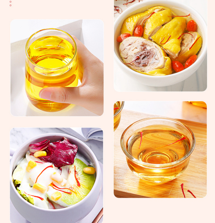 除了泡水以外,我还研究了藏红花的多样用法。泡酒、泡花茶,做调料那也是灰常美味滴!