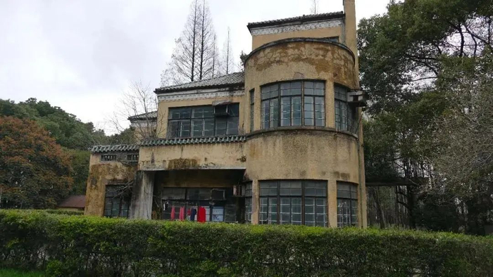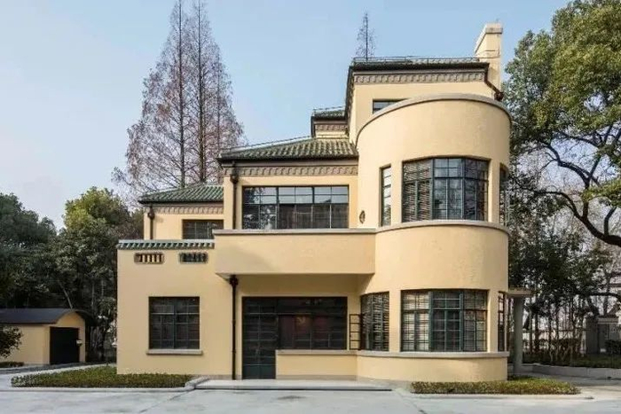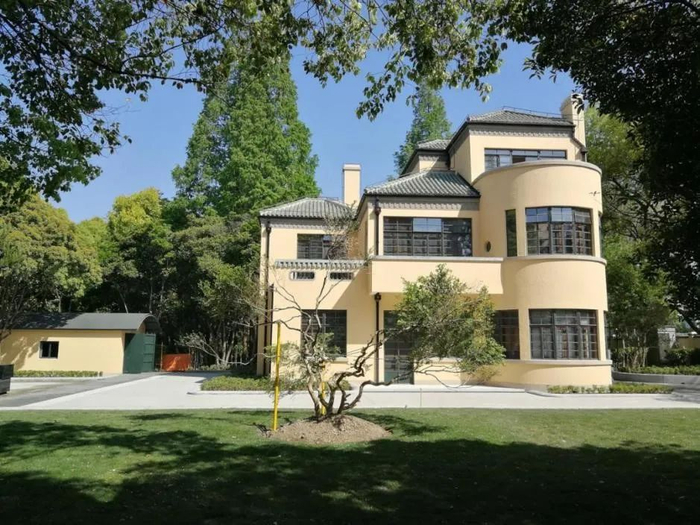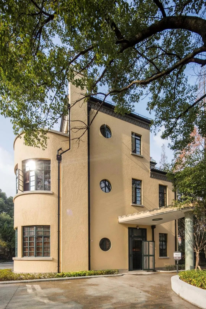 绿植掩映之中的一座近现代主义风格建筑,占地300平方米左右,院内有一棵60多年树龄的香樟树,枝繁叶茂,树荫底下的小楼古朴别致,与周围的环境相映成趣。