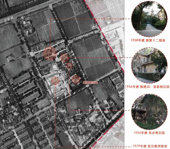 自1952年院系大调整之后,复旦大学的建筑有两类,一类是现在复旦大学的核心区内新建较多教学和宿舍建筑,第二类建筑来自于新规划的土地上,这些土地上原本也有一些建筑遗留,这其中就包括了陈望道旧居。建筑位于复旦大学第九宿舍内,这是复旦大学在邯郸路以南最早建设的职工宿舍之一。