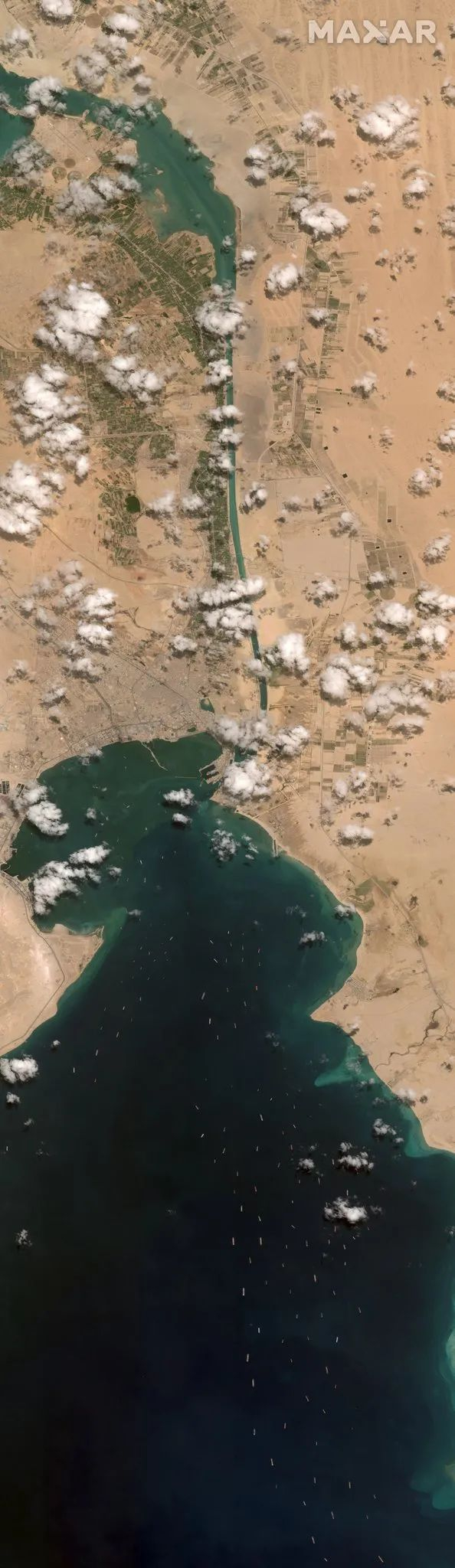国外航天技术公司maxar发布的苏伊士运河堵船遥感影像