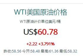 国际油价也大幅波动四天,周五双双涨超4%,美油WTI一度冲破61美元,随后回落。