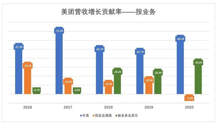 受疫情影响,2020年到店/酒旅营收同比下降10亿,对营收增长的贡献率为负5.9%;