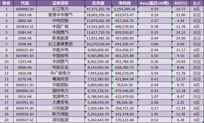 中国主要的上市公司有长江电力[600900.SH]、国电南瑞[600406.SH]、中环股份[002129.SZ]、金风科技[002202.SZ]、南网能源[003035.SZ]、深圳能源[000027.SZ]、新天绿能[600956.SH]、桂冠电力[600236.SH]、国网英大[600517.SH]、伟星新材[002372.SZ]、盈峰环境[000967.SZ]、节能风电[601016.SH]、中国西电[601179.SH]、太阳能[000591.SZ]、昊华科技[600378.SH]、上海电力[600021.SH]、天顺风能[002531.SZ]、许继电气[000400.SZ]、玉禾田[300815.SZ]、华银电力[600744.SH]、国检集团[603060.SH]、平高电气[600312.SH]、圣元环保[300867.SZ]、启迪环境[000826.SZ]、涪陵电力[600452.SH]等。