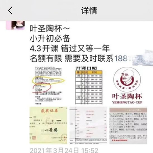 学大老师:叶圣陶杯它都是机构给报名。咱们可以帮家长报名;第二种情况是可以带奖项的,如果您确定拿一等奖,咱们有相应的一个费用;二等奖也有相应的费用。咱们还有课程学习,这都是可以的。