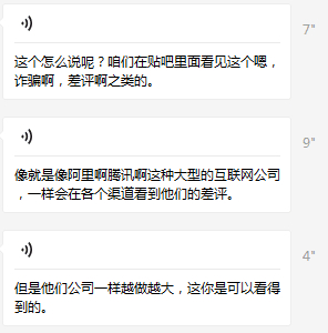 我说我没有在怀疑你本人是不是这里面的员工,我只是担心交了钱整个机构开始不负责,老师开始噼里啪啦给我发送一大堆上过什么电视广告的视频,以及一些公众号的品牌背书,并且说大公司有差评是一件很正常的事。