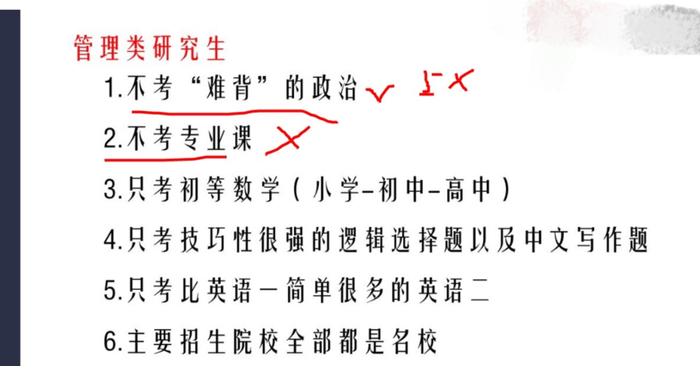 后来我进行一番询问,陈老师说“只考两门,165分能上”这条件特指的是:工商管理、公共管理、会计、旅游管理、图书情报、工程管理、审计这七大管理类专业。