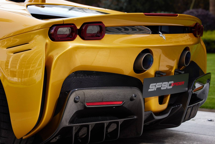 全新SF90 Spider采用一台3.9升双涡轮增压V8发动机与三台电机组成的插电式混动系统。其中,V8涡轮增压发动机经过重新设计,最大输出功率达780cv。