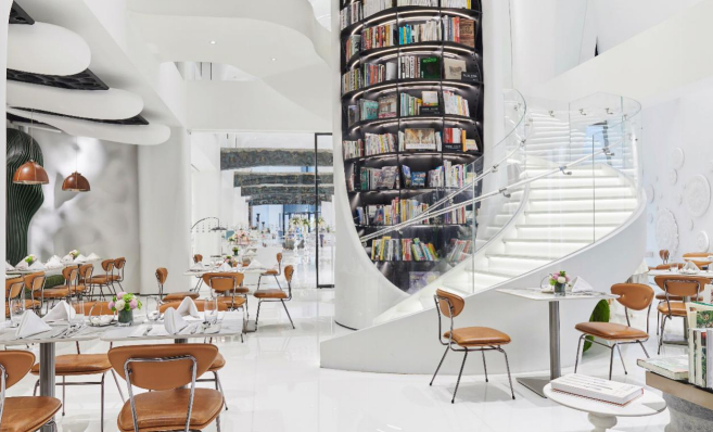 据悉,美克洞學館内整合了包括Markor Light、Caracole、Rehome、轻爵Jazz Lite在内的36个品牌和功能空间,涵盖家具软装、时尚餐饮、文化休闲等丰富产品与服务。以独特的设计优势和丰富的产品品类,美克洞學館打造了深度沉浸的生活体验式购物空间。消费者不仅可以尽情体验不同风格的家居空间,还可以把这里当作图书馆、咖啡厅、美术馆,甚至来聆听一场动人的音乐演奏会。