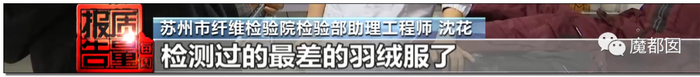 甚至连苏州的这位检测员小姐姐都忍不住吐槽了,这是她从业以来检测过最差的羽绒服,实在太离谱了: