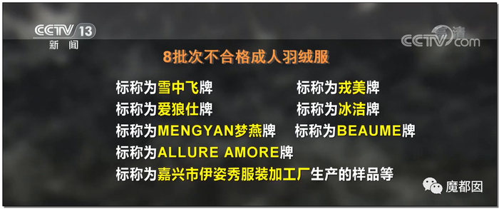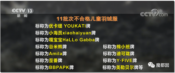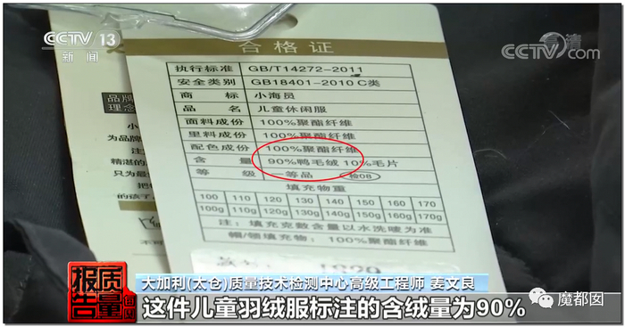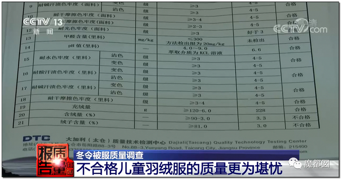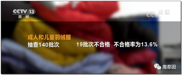 冬天最重要的羽绒服,大人小孩加起来不合格甚至超过了13%,按照比例,市场上7~8件羽绒服里就有一件是不合格的。