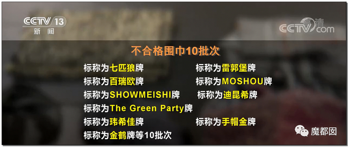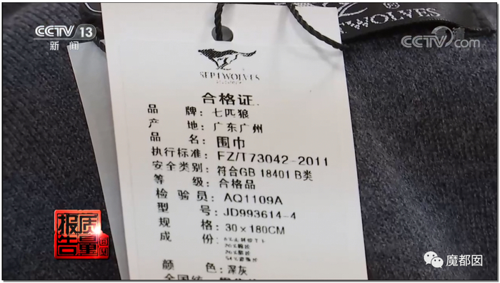 这是围巾不合格清单,我们很难想象,七匹狼这样的老牌国产名牌产品竟然也会搞这种事情……
