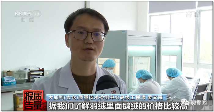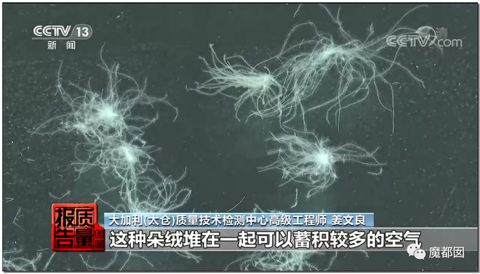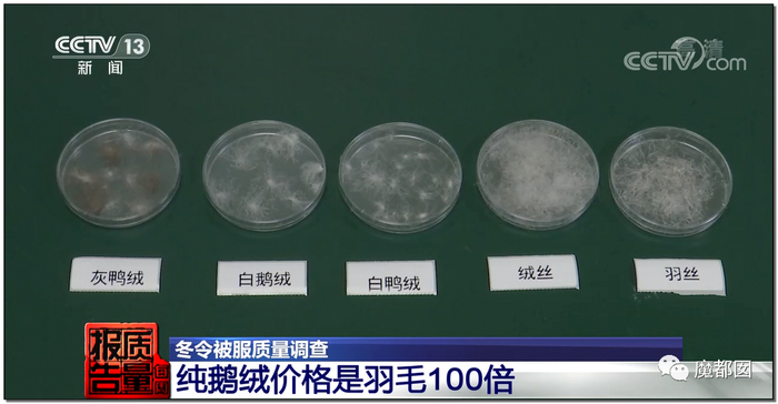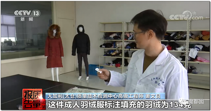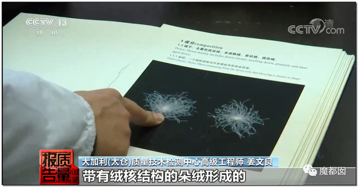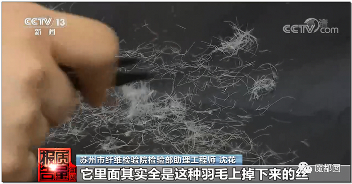 而实际检测发现,很多羽绒服内根本就不是朵绒: