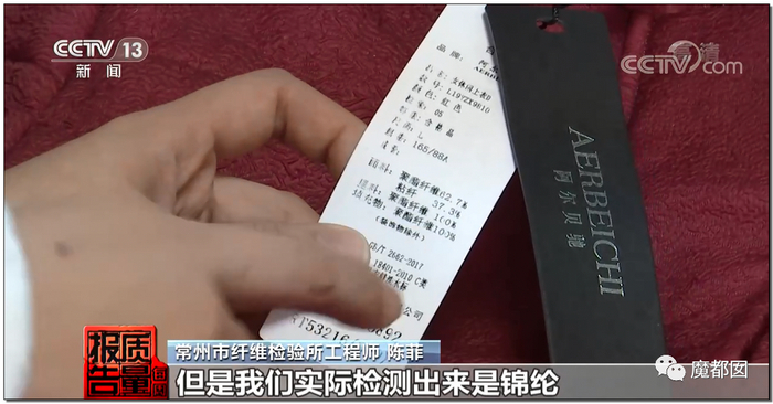 但是实际检测出来是更便宜的锦纶……