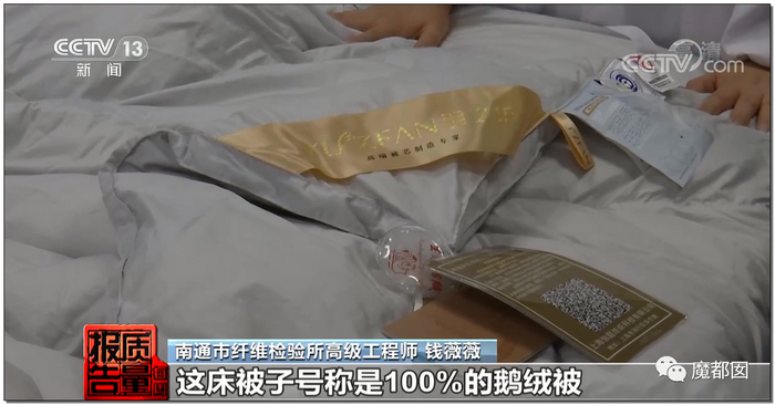 而网上里买的羽绒被问题同样严重,比如这条,号称100%鹅绒: