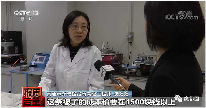 这位检测小姐姐也忍不住吐槽了,和前面那件羽绒服一样,这条所谓的羽绒被根本连羽绒被都算不上!