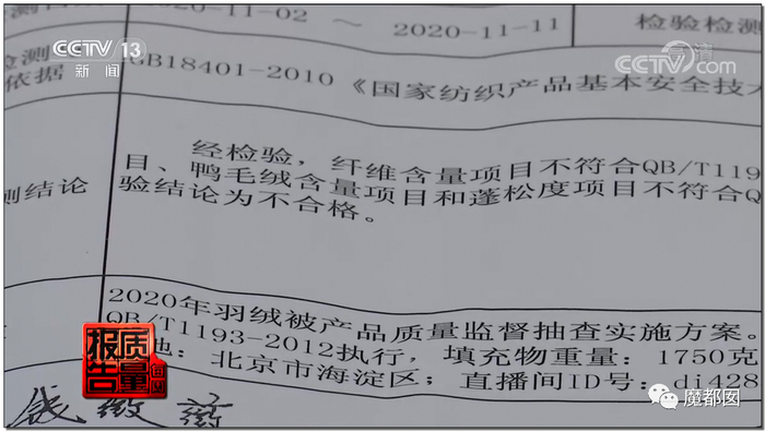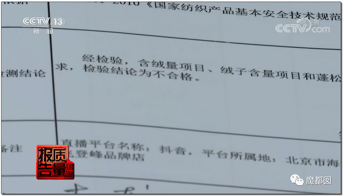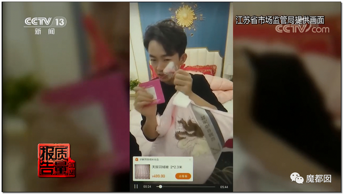 羽绒被是直播平台抽检的重灾区。