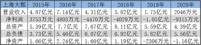 根据彼时收购公告披露的合并利润表数据,上海大郡2012年、2013年、2014年上半年营业收入分别为2450万元、5590万元、4446万元,净利润分别为-1959万元、-1089万元、-917万元。不仅如此,上海大郡两年及一期的前五大客户贡献收入占比均超过80%。