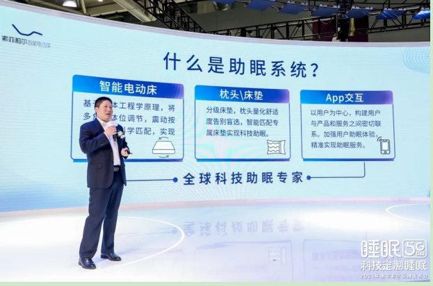 做“智能电动床”的想法,源自唐国海2012年的一段经历。当年7月,他的一个德国朋友来中国,唐国海照例热情接待。这位朋友身体很健康,酒量也很好,能喝两瓶茅台。把酒言欢后,朋友乘坐飞机安全返回德国,却在到家的第二天传来噩耗:凌晨零点多,因为心梗猝然离世。一个鲜活生命的消失,深深刺激了唐国海。“人在睡眠的时候是非常无助的,发生的事情是自己及家人不可控的,我们是做床的,能不能做一张‘会说话’的床,在身体遭遇健康危机时给出预警,避免悲剧的发生?”在这个念头下,唐国海开始带领团队开启了新的研发课题,并创立了索菲莉尔品牌。当时,恰逢“互联网+”技术风潮正盛,在研究中他们发现传感器技术已经非常先进。“将电动床加上互联网传感器,床不就会说话了吗?”找到这个方向后,唐国海整合了中国、德国、美国的科研团队,投入巨资开始深入研究。历时三年,于2015年推出了比较成熟的产品,2016年索菲莉尔智能电动床正式推向市场,2017年在互联网大会的会址——乌镇首次喊出了“智能床”的概念,并在各大互联网展会上参展亮相,引发央视《焦点访谈》等权威媒体的关注,“智能电动床”这一品类逐渐在行业崭露头角。