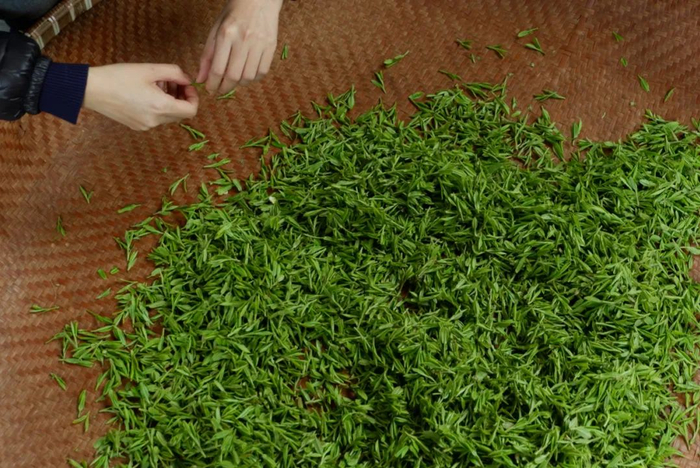 前期机器杀青,由专门的西湖龙井炒茶师观察(拥有10年以上的炒茶经验者才能算得上西湖龙井的炒茶师),根据茶青不断调整,之后摊晾回潮。