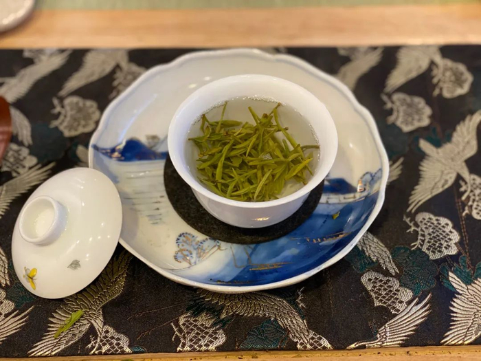 汤色嫩绿明亮,滋味甘醇鲜爽;叶底嫩匀成朵,香气鲜嫩清高持久。