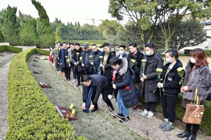 3月4日,多云转阴,时有小雨。上海市龙华烈士陵园墓区。一群着深色衣服的人,列队而来。