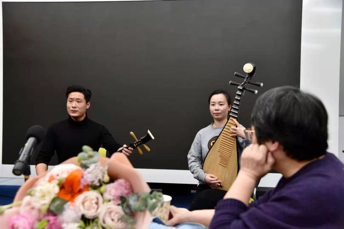 3月4日的这个上午,在上海市龙华烈士陵园,在向王孝和烈士献花后,即将在27日正式演出中饰演王孝和的上海评弹团的“90后”青年演员侯骁晟坐下,抱起三弦,为王佩民演唱了《王孝和》第三幕《党的叮咛》中的片段《写遗书》: