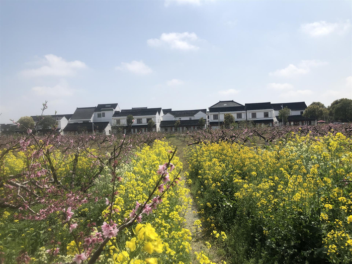 三月沪郊,春光灿烂,桃花、菜花连片盛放。在金山区吕巷镇,万亩水果公园里,和平村的120套农民集中安置房已经封顶,近半村民选择了“自住一套+委托运营一套”,接下来每户可一次性获得委托运营租金40万元。