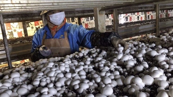 现在,合作社带头人陈林根又研究出了蘑菇堆料三次发酵技术,带动周边农民简单轻松地种蘑菇,每户种植户可年入50万元。