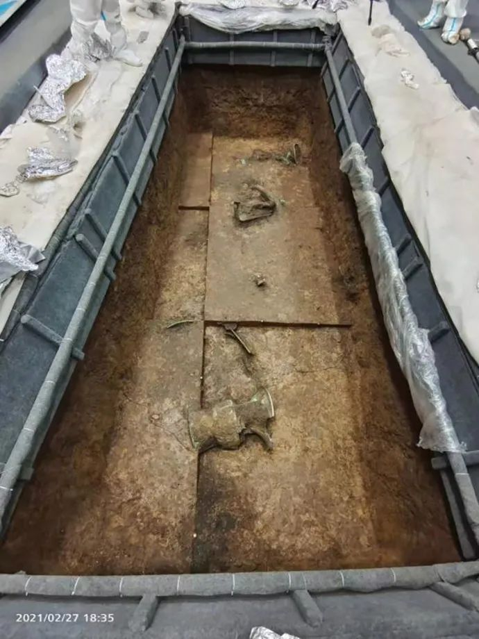 有专家猜测,之所以三星堆现在还没有发现文字,或是因为古蜀人都把字写在比较容易损毁的器物上,比如木器、纺织品。此次发掘中的确发现了“丝绸的痕迹”,其出现在祭祀坑的灰烬层里,以及部分青铜器周边,似是用作包裹。