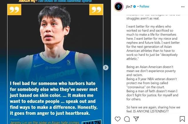 ·美国华裔篮球明星林书豪在社交媒体上说:“作为打了9年NBA的老将,我还是免不了在球场上被称为‘新冠病毒’。”