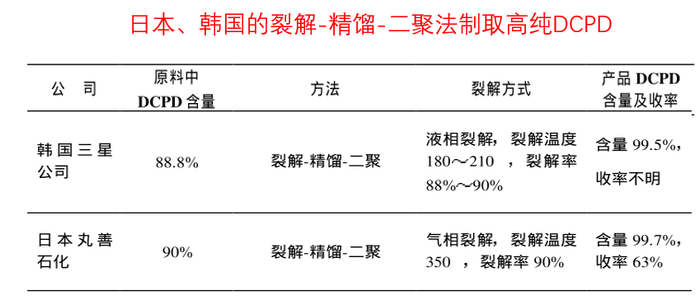 (2)根据DCPD沸点与其它组分相差较大,精馏提纯DCPD;