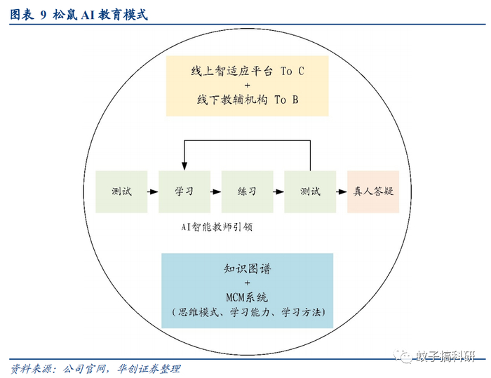✔线上“人工智能+真人老师”,线下小班教学。在线上教育方面主打 AI 授课,真人老师进行辅导;在线下与教辅机构进行合作,提供 6 人小班教学,主要收取咨询费和学费分成。